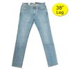 This jean has rich light blue tones and washed to keep its mid base. With light hand sanding which adds a subtle faded contrast to these areas, completed with understated whiskers/creases. Stitching to compliment the denim shade