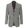 Rowan suit jacket in grey herringbone check wool blend fabric.