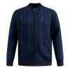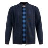 The D555 GILLINGHAM Knitted Zip Through Cable Sweater in Navy Marl combines timeless cable knit design with a practical zip-through feature. This sweater also includes a bonded check lining, providing warmth and style all in one. Its versatile design allows for easy layering, making it ideal for both casual and semi-formal outfits during the colder seasons.