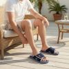 The Velcro fastening ensures an adjustable fit, making them suitable for a variety of foot shapes and sizes. Available in sizes 9 to 15, these sliders are designed to offer a spacious, comfortable fit. The classic navy color adds a sleek, versatile touch to your casual footwear collection.